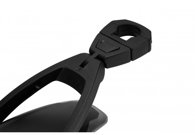 Avec la connexion intelligente ACID PRO Vane Click, le montage et le démontage se font en quelques secondes. Après avoir fixé une fois un adaptateur de serrage à la tige de selle, le garde-boue peut être déverrouillé et reconnecté par simple pression sur un bouton, ce qui permet au cycliste une utilisation flexible.