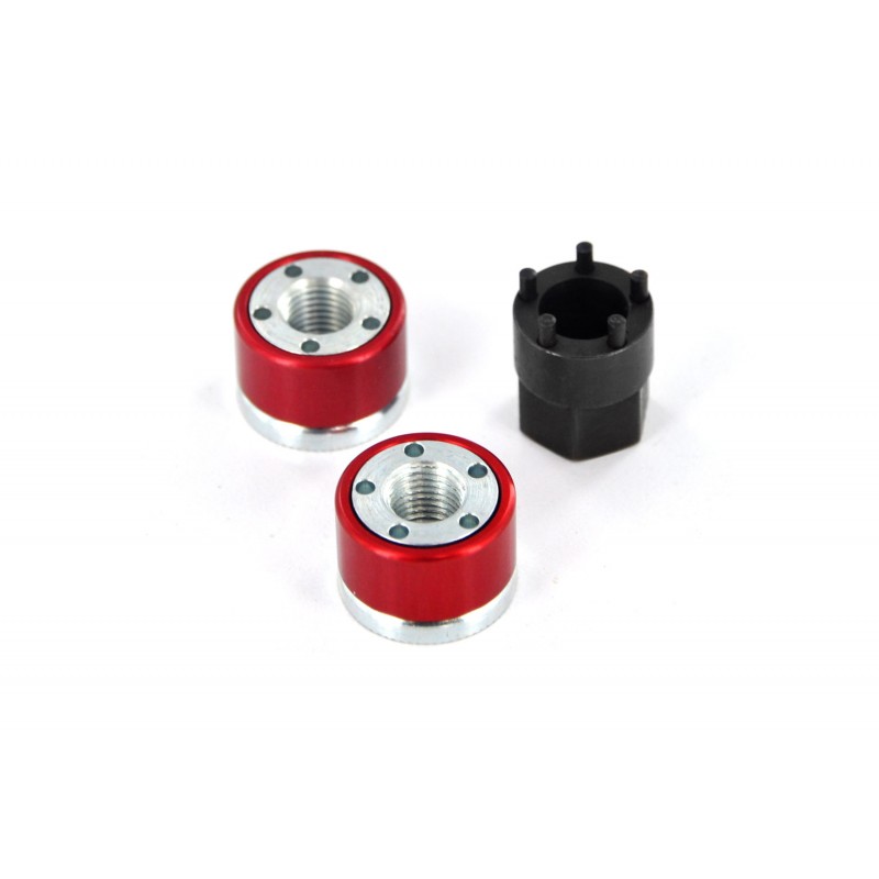 3X ou 4X Ecrous en Acier zingué avec enveloppes en Aluminium anodisé incolore tournant à vide une fois serrés.
