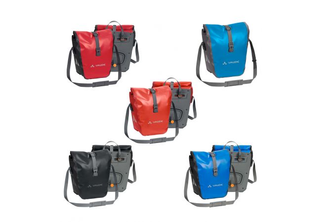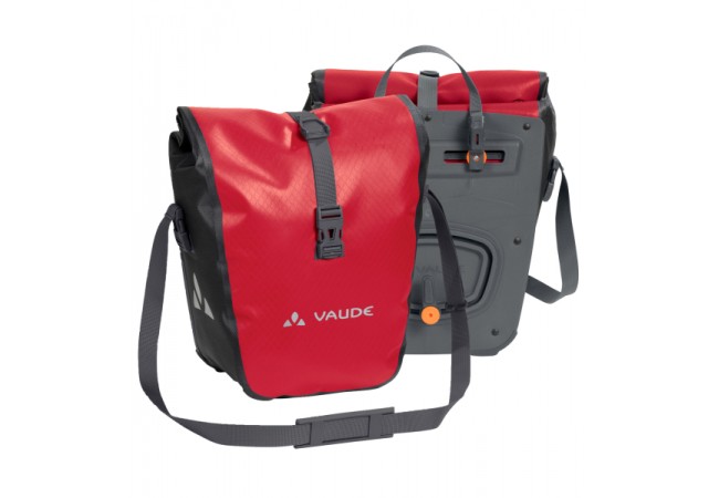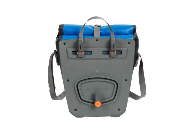 3X ou 4X A la découverte du monde ! Cette sacoche étanche pour roue avant, en bâche résistante sans PVC, est climatiquement neutre et fabriquée sur le site allemand de VAUDE au bord du lac de Constance. Elle n’attend que vous pour partir à l’aventure ! Grâce à une fermeture par enroulement totalement étanche, sa taille est ajustable et son contenu reste bien au sec. Une poche intérieure supplémentaire permet de bien ranger ses affaires. Ces sacoches sont fixées à droite et à gauche du porte-bagages arrière et stables grâce au système QMR 2.0 et à une plaque rigide. Elles sont ajustables à l’aide de petites roues et peuvent rapidement et facilement être fixées et enlevées. Ces sacoches pour roue avant peuvent aussi bien s’utiliser sur la roue arrière. Elles peuvent être attachées directement au crochet QMR en utilisant tout simplement un cadenas à vélo. Le volume total des deux sacoches est de 28 litres. Avec des éléments réfléchissants. Contenu: deux sacoches (parie). Ce modèle peut être complété par des accessoires pratiques : Toolbag Front, Addita Bag.