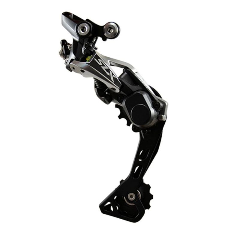 Le dérailleur arrière Shimano SLX RD-M7000 Shadow+ est destiné aux transmissions 11 vitesses. La technologie Shadow+ utilisée offre une transmission silencieuse et diminue les battements de la chaîne. Grâce à un simple levier, la chape peut être maintenue en position ("On") afin de retirer et remettre en place la roue arrière sur le cadre de façon très aisée. La technologie Shadow+ offre également un maintien optimal de la chaîne et des changements de vitesses souples et précis. Ce modèle est doté d'une chape longue. Ce dérailleur SLX est un peu plus lourd que ceux de la gamme XT, il offre néanmoins un très bon niveau de performance même dans le cadre d'un usage intensif.