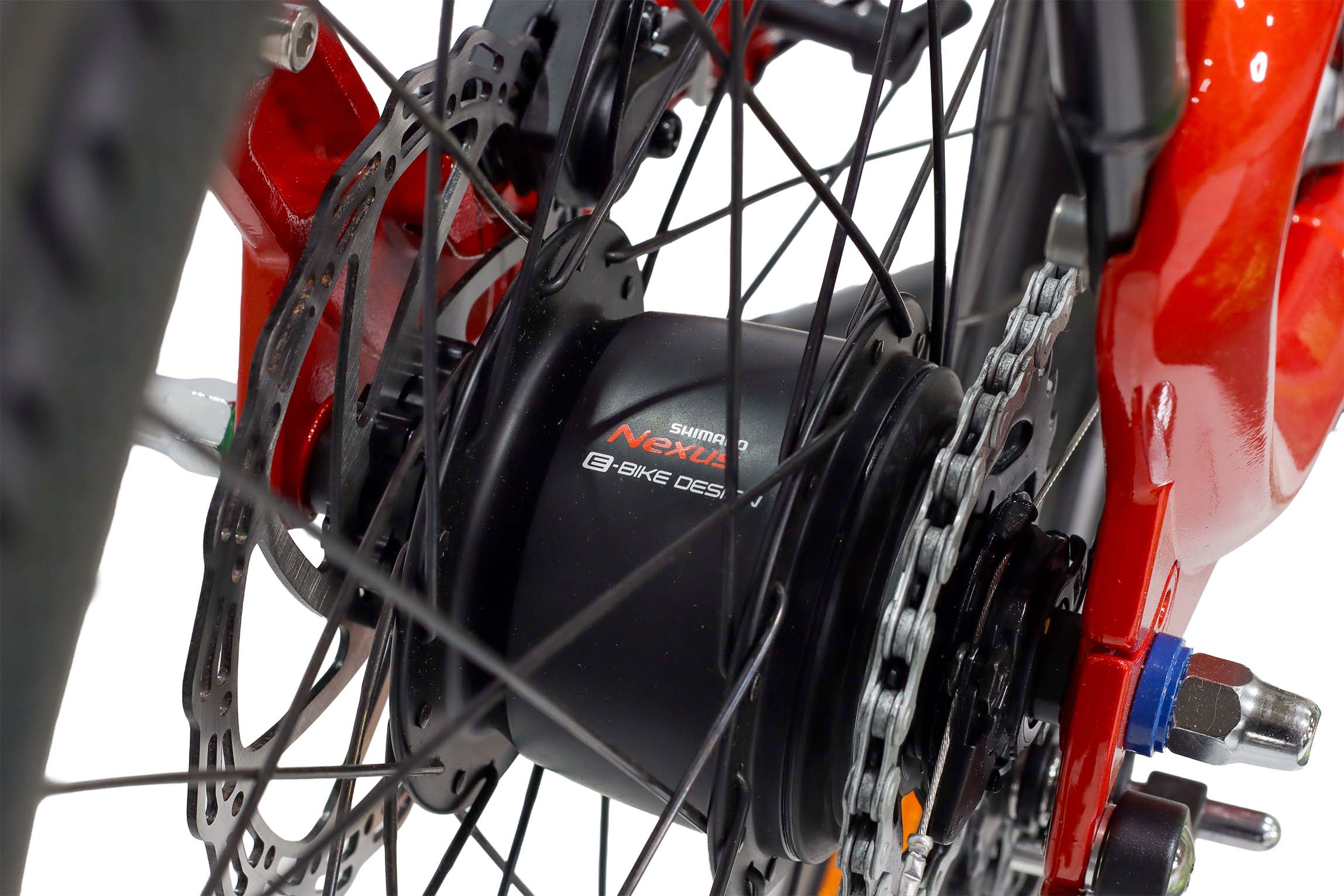 Shimano Nexus SG-C7000-5Le système de changement de vitesse interne du moyeu Shimano Nexus SG-C7000-5 est conçu pour répondre aux exigences spécifiques de la conduite d'un vélo électrique. Pendant les changements de vitesse, il résiste à des forces de pédalage beaucoup plus élevées et offre l'immense plage de rapports de 263 %. |