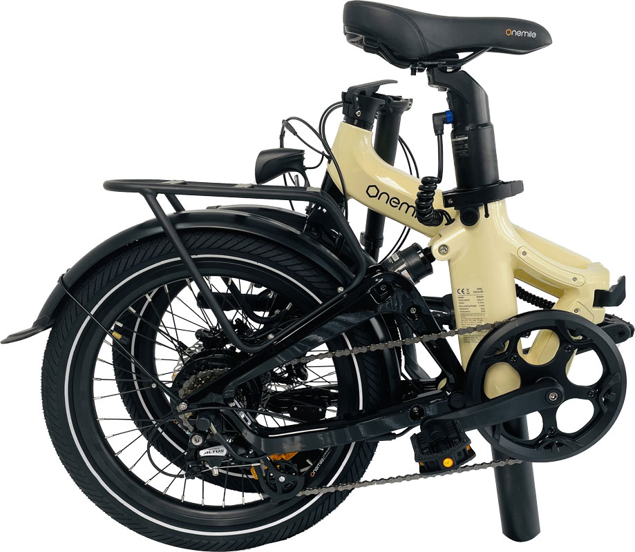 Dimensions plié - Taille de roue 20 pouces,Batterie 518Wh intégrée au tube de selle - Autonomie 120Km,Dérailleur SHIMANO ACERA et Freinage Hydraulique à disque,Suspension arriere à ressort pour plus de confort.,Collier de selle antivol à clé intégré